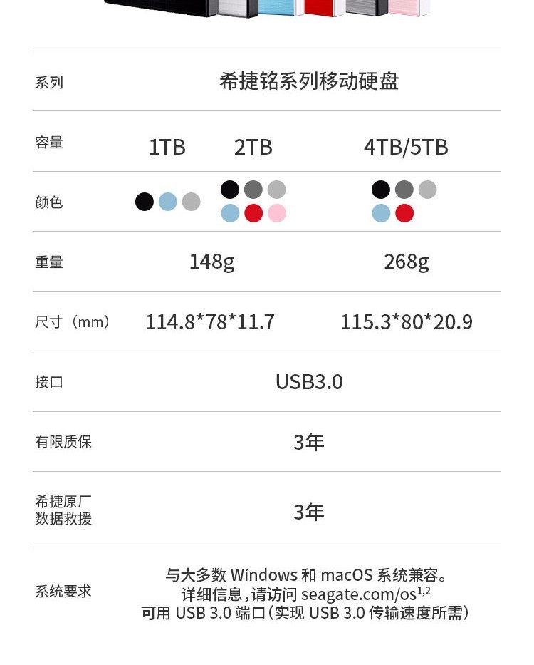 希捷/Seagate 2TB 移動(dòng)硬盤
